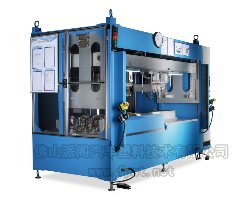 該類設備用于真空復合或壓力復合(粘接)后的零件,并將骨架四周的表皮翻邊包覆過來,多用于汽車內飾件,如門扶手、上框架、儀表板飾條等。