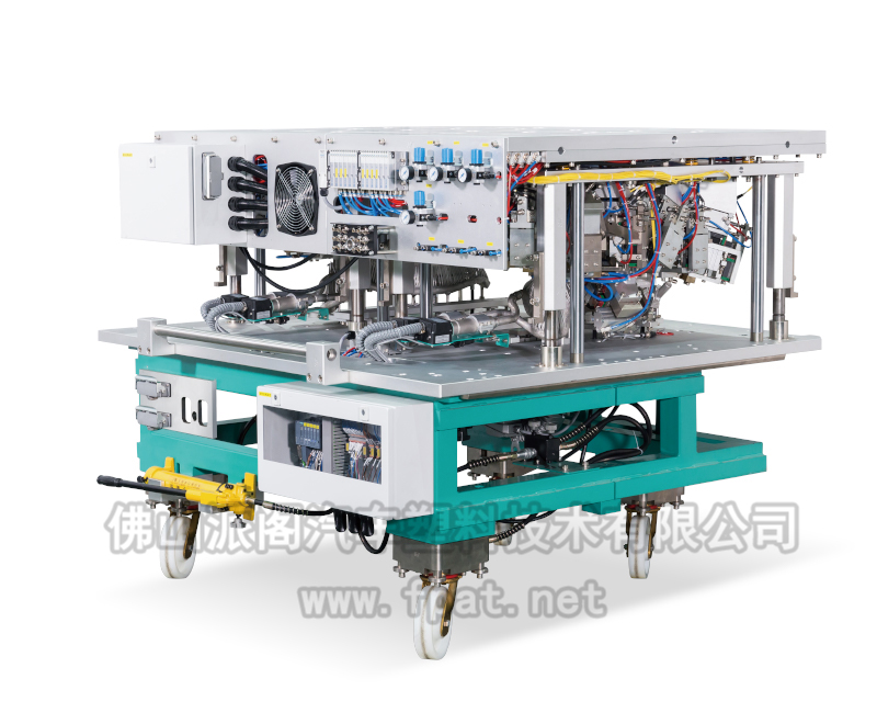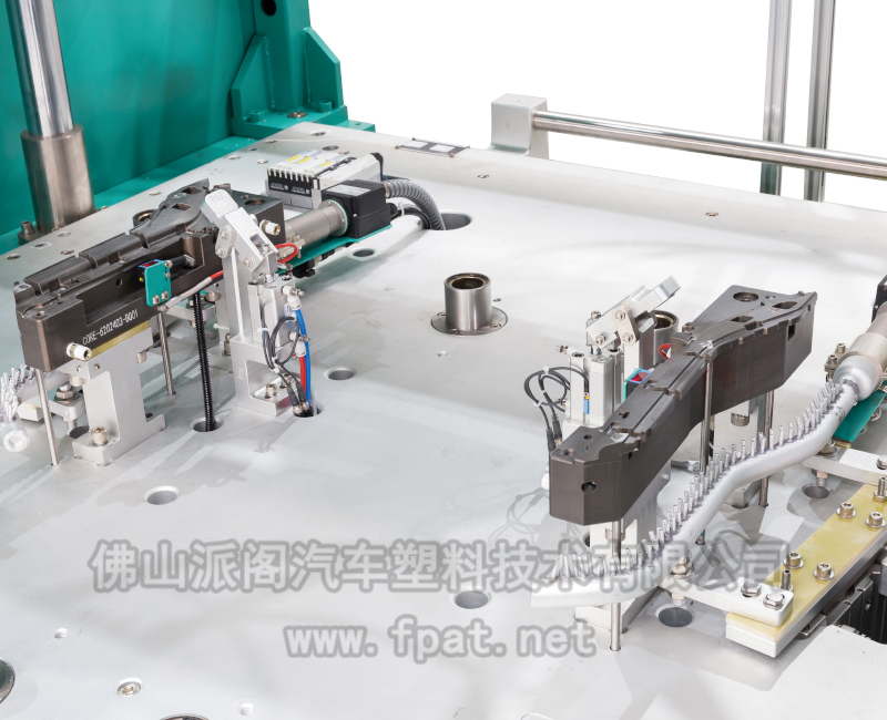 該類設備用于 PVC、真皮等表皮與塑料骨架的粘接復合,并將骨架四周的表皮翻邊包覆過來,多用于汽車內(nèi)飾件,如門扶手、上框架、插件、手套箱、儀表板飾條等的復合和包邊,并將兩道工序合在一臺設備里完成